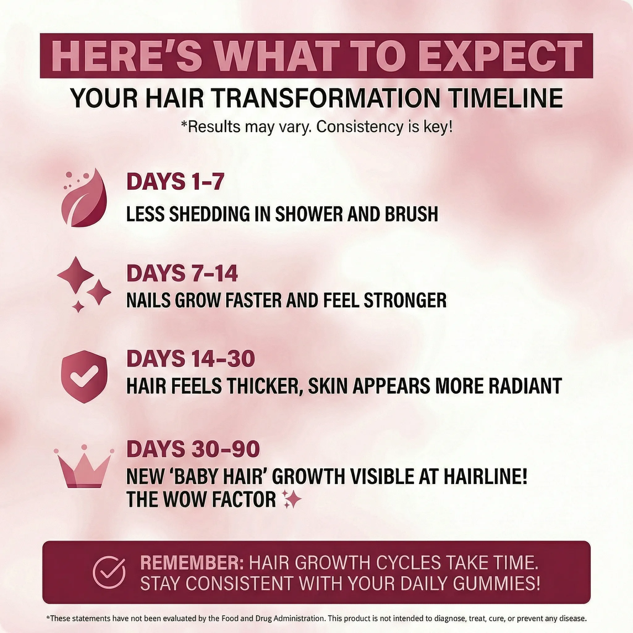 Just 2 delicious gummies per day help reverse follicle starvation from within — naturally supporting hair thickness, skin radiance, and nail strength.
