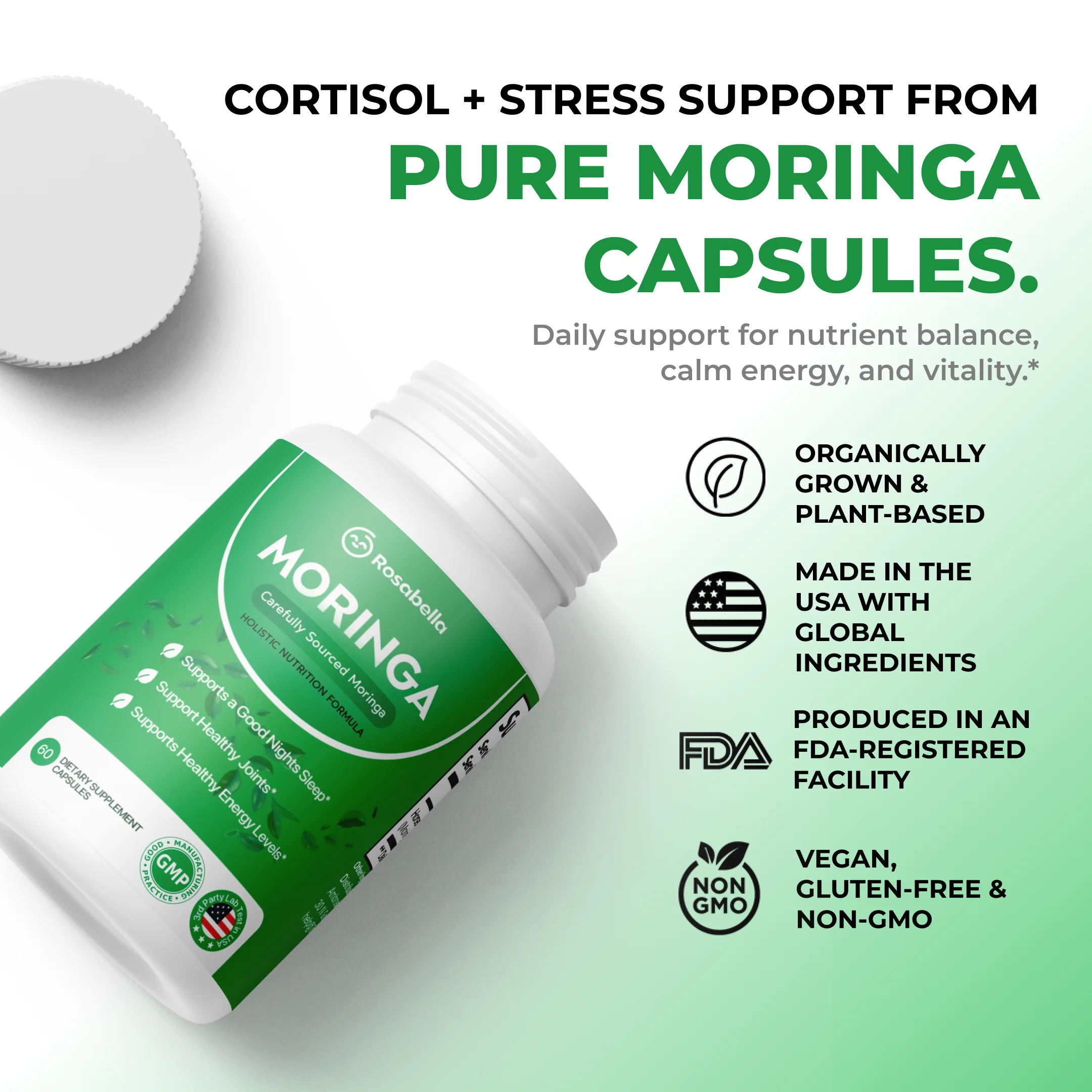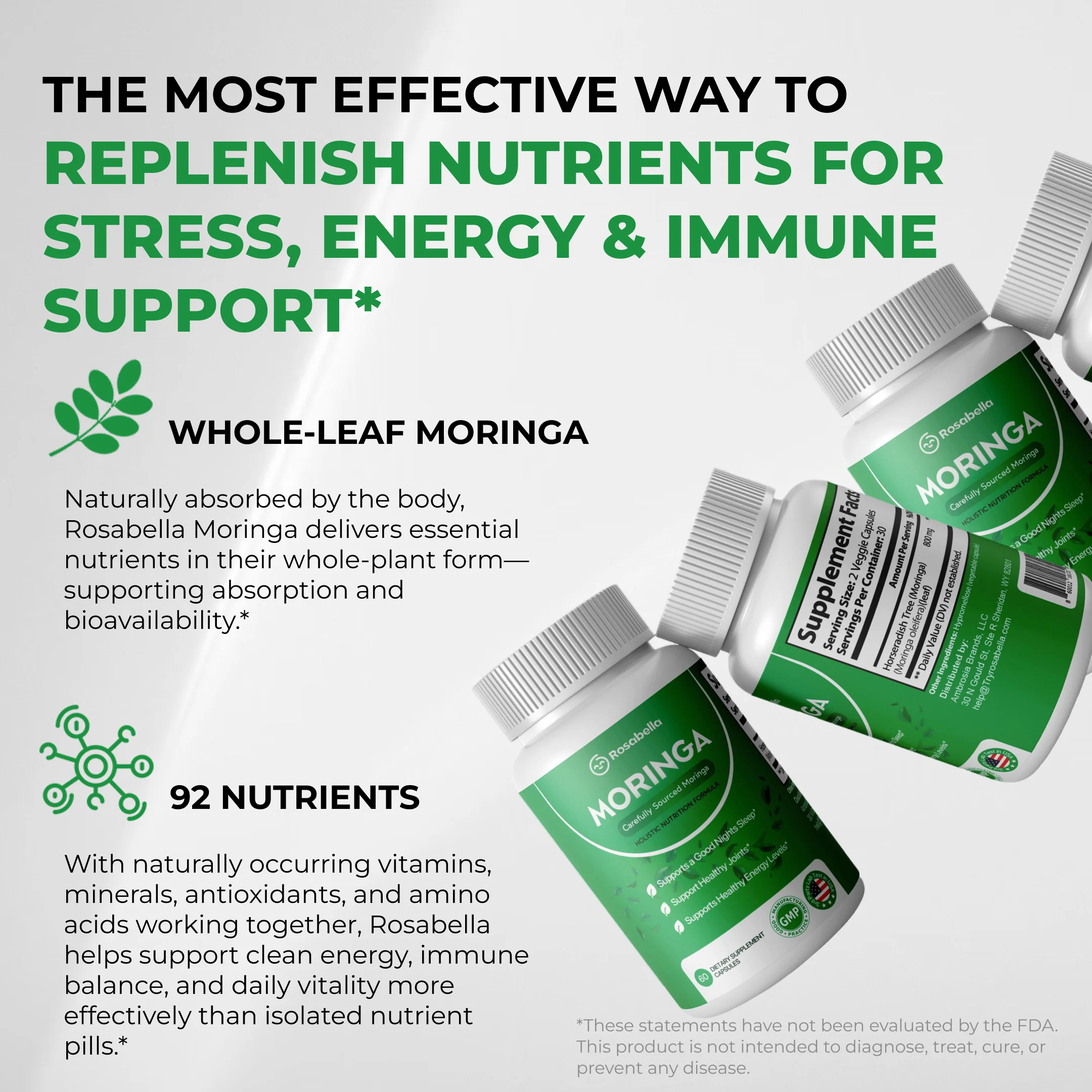 Rosabella Moringa delivers over 90 essential nutrients in their natural, whole-food form helping your body: